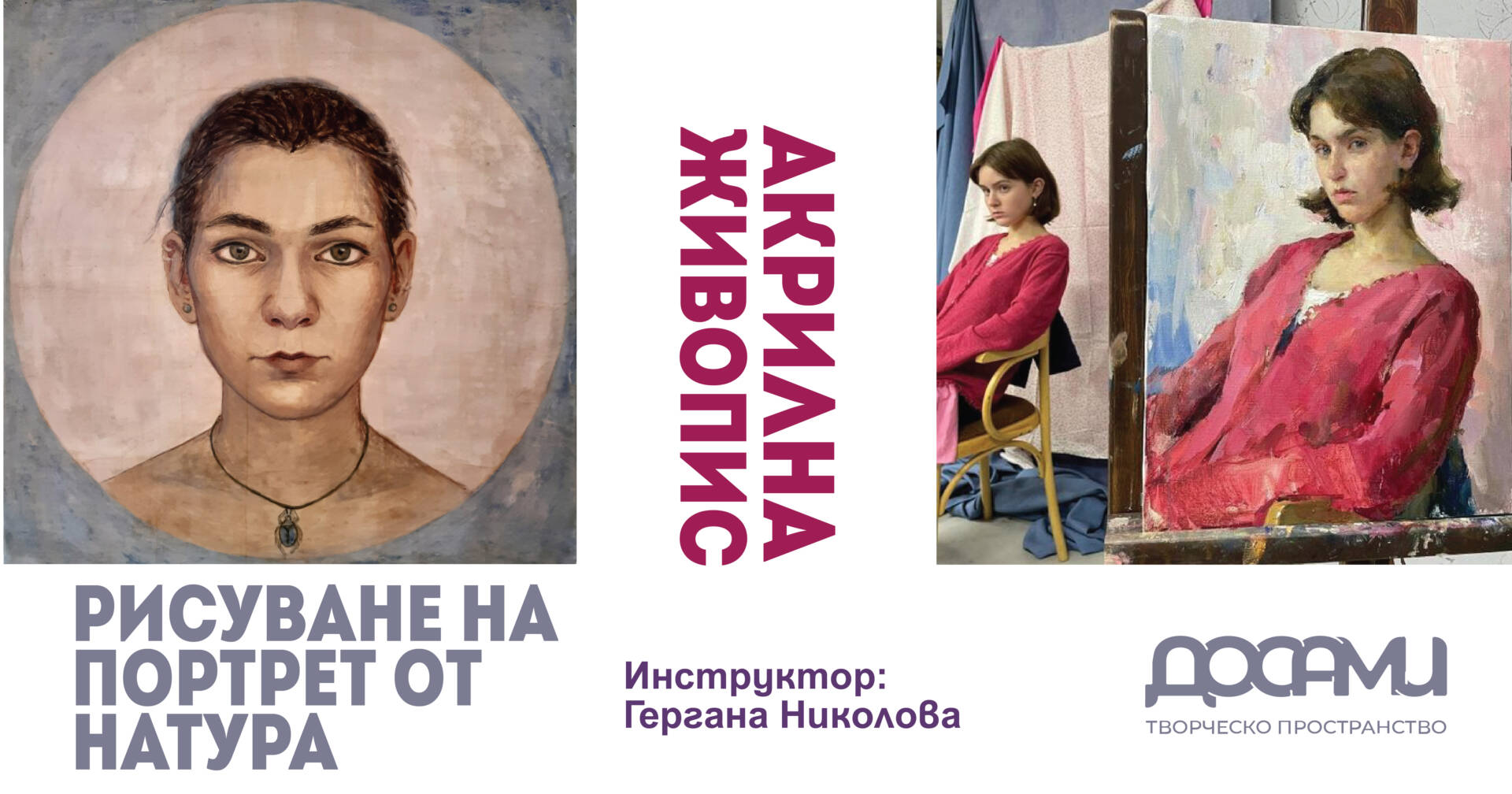 Тази работилница е част от цял курс за рисуване на портрет и работа с макрилни и маслени бои.
